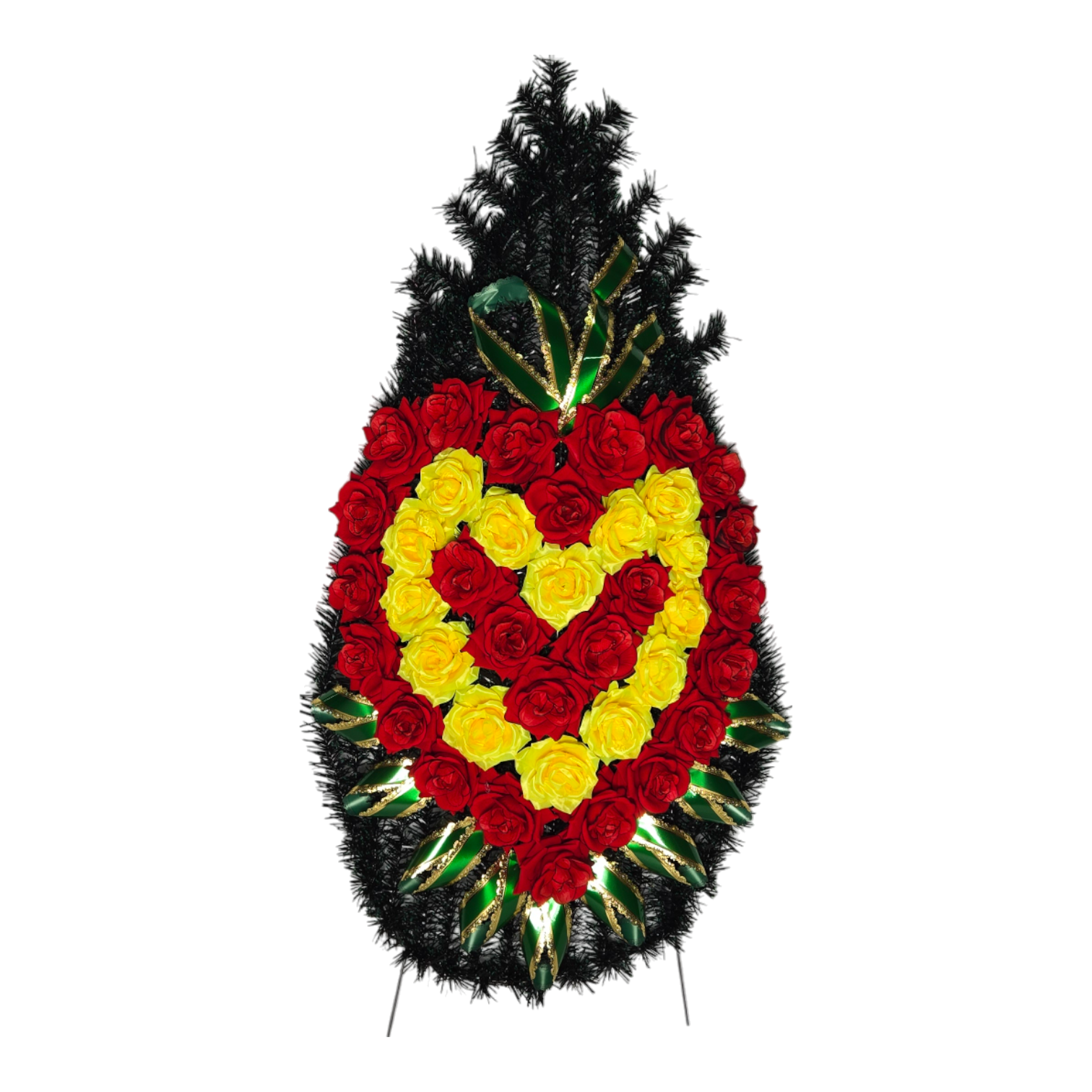 Венок «Т1-2 Сердце» — ритуальный венок, символизирующий вечную память, уважение и скорбь. Он используется в церемониях прощания, похорон и поминовений. Композиция может быть выполнена из живых или искусственных цветов, с включением зелени, лент и декоративных элементов. Благодаря прочной основе и стойким материалам, венок сохраняет форму и презентабельный вид даже при неблагоприятных погодных условиях. Мы предлагаем широкий выбор форм: круглые, овальные, в форме сердца или крестов. Ленты с надписями можно персонализировать, чтобы передать чувства от имени родственников, коллег или друзей.